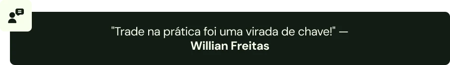 Participar do trade na prática foi um divisor de águas na minha organização financeira [...] No início, o mercado parecia um universo restrito a especialistas, mas a metodologia junto com a mentoria do Yaggo, permitiu que eu absorvesse o conteúdo no meu próprio ritmo.